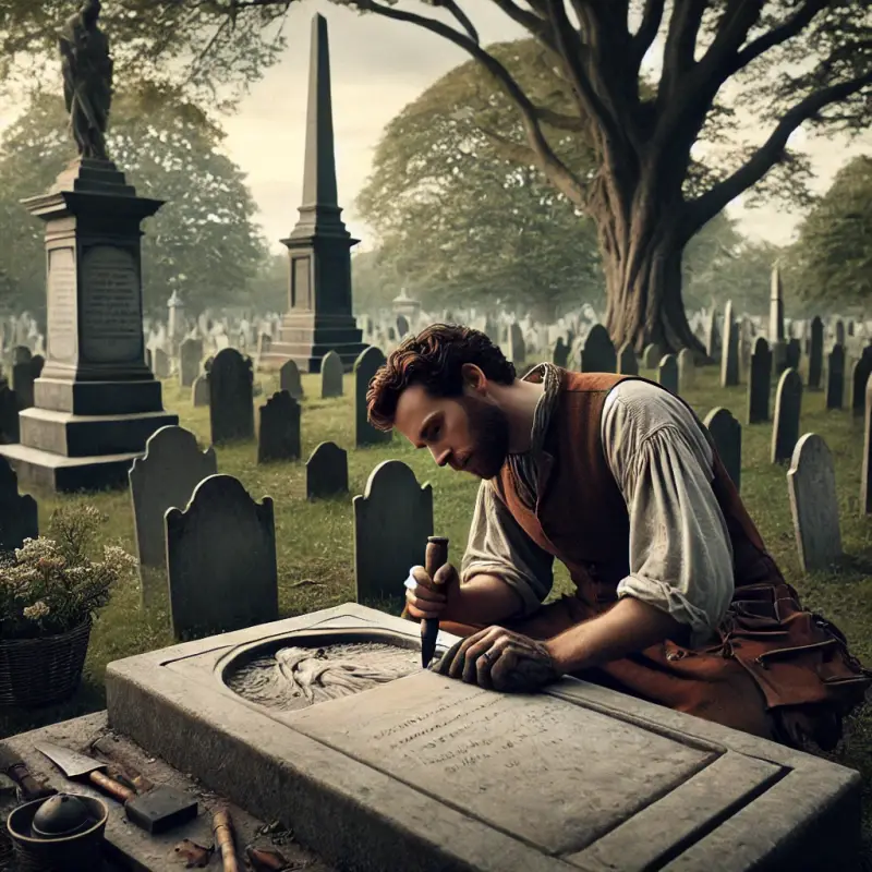 Le granitage de caveau consiste à avec un bâton et un pinceau à tapoter celui ci afin de faire des petits points sur le monument. On y met du blanc et du noir et on laisse sécher. Cette technique permet d'avoir un rendu finit du monument.